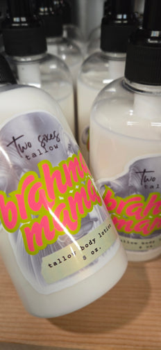 I've carefully fragranced Brahma Mama with notes of Peach, Sage and Black Cherry blend with heart notes of Jasmine, Geranium and Rose, along with a base of Almond Milk for a nostalgic feeling.